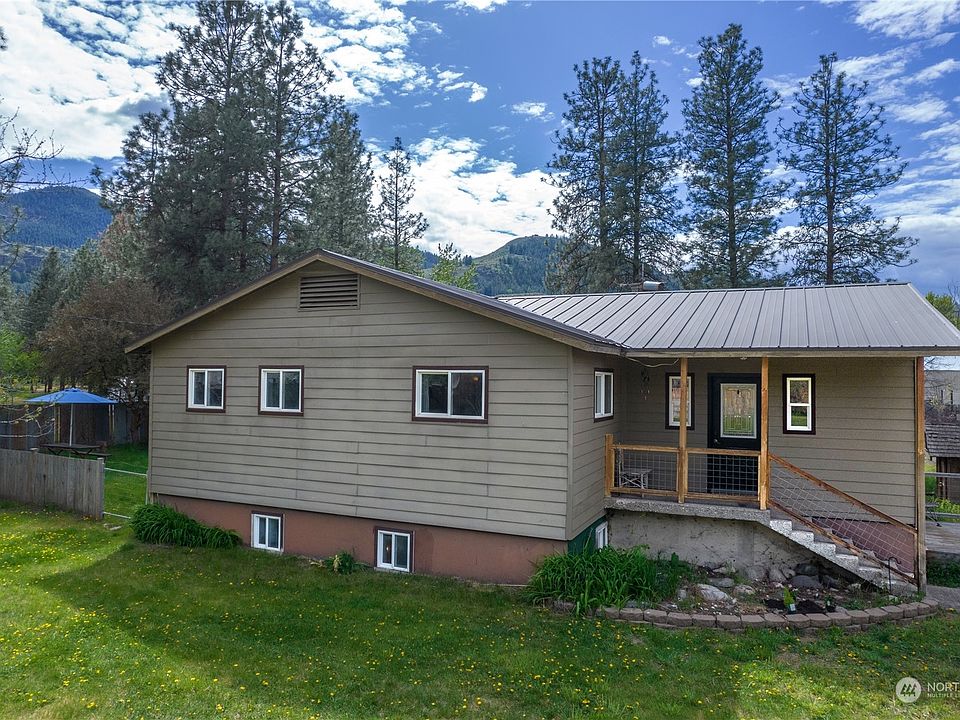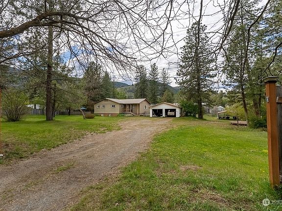 1.45 acres w updated home on edge of Twisp. Convenient location walking distance to town & its amenities! Remodel updates includes new windows, tile & laminate floors, revamped bathrooms w radiant heat floors, open kitchen w creative concrete counters. Desirable kitchen-dining open floor plan flows onto deck w views of yard & surrounding mountains. Sizable living/media room off dining room separates sounds & activities. 3 comfy bedrooms/2 bathrooms. Primary bedroom on main floor has large walk-in closet. Daylight basement includes big rec room, laundry room & add'tl storage room. Spacious level partially fenced yard w fruit & mature trees & space for animals, gardens, room to play! Incl irrigation. 2 car garage & storage sheds are a bonus.