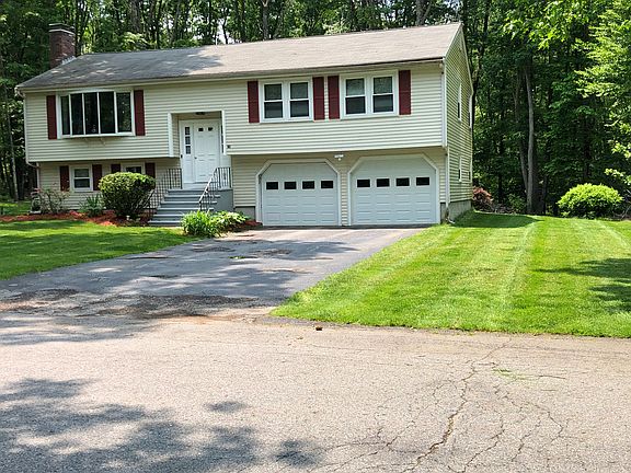 Northborough Farms NEIGHBORHOOD! Contemporary split level. Terrific .83 acre level lot backs up to wooded buffer! Open concept cathedral ceiling living room and dining room. Cabinet packed kitchen with new flooring, countertops and sink leading to private deck. Gas cooking. Gleaming refinished hardwoods on first floor. Roof, furnace and siding updated approx 13 years ago. Lower level carpeted family room, brick fireplace, day light windows and full bath. Windows replaced 3 years ago. Central air! Town water and natural gas. Community garden. Top ranked Northborough Schools & convenient access to major highways.