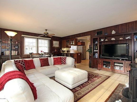 Picture perfect Ranch with an impressive dining rm. which could be a dining room/living room combo. Wood burning stove in the great room, 2 sets of Andersen sliders lead to the 20x10' deck overlooking the 18' above ground pool with its own deck, nestled in a private corner of the yard. The garage, which had been a workshop has a wood burning stove,(remaining) cement floor and windows. The long driveway can accommodate parking for multiple cars. The 2-person Jacuzzi in the main bathroom is something out of House Beautiful, and has a walk-in shower, vanity, skylight, bay window, closet, recessed lighting. see more