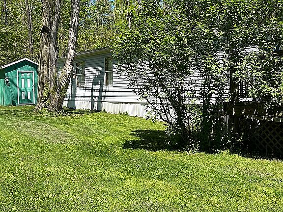 Pictures coming soon. Located in a manufactured housing community. 5 minute walk to Grimes Glen. Many shops and hiking opportunities within walking distance. Perfect for attending the Grape Festival. 4 bedrooms and 2 full bathrooms, with new flooring and new roof that comes with a transferable warranty. Comes with new refrigerator, gas oven and range, washer and dryer. Furnace replaced in late 2021. Furniture can be left if wanted by buyer. Includes an attached deck and 8ftx8ft shed. Contact seller at (585) 868-8633