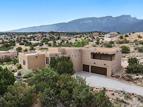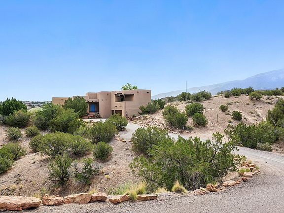 Discover refined Southwest living at 36 Vista Sandia Court, a stunning 3-bedroom, 2-bath residence offering 2,600 square feet of comfort on 1.7 acres in scenic Placitas, New Mexico. Perfectly positioned at the end of a tranquil cul-de-sac, this custom home captures sweeping views of the Sandia Mountains. Crafted in timeless Southwest style, the home exudes sophistication with its open-concept layout that welcomes you with abundant light, high ceilings, wood accents, and uninterrupted mountain vistas from every vantage. The spacious great room centers around a graceful fireplace and merges effortlessly with the dining area and chef's kitchen, creating an ideal flow for entertainers. Do not miss your opportunity to view this one of a kind estate.