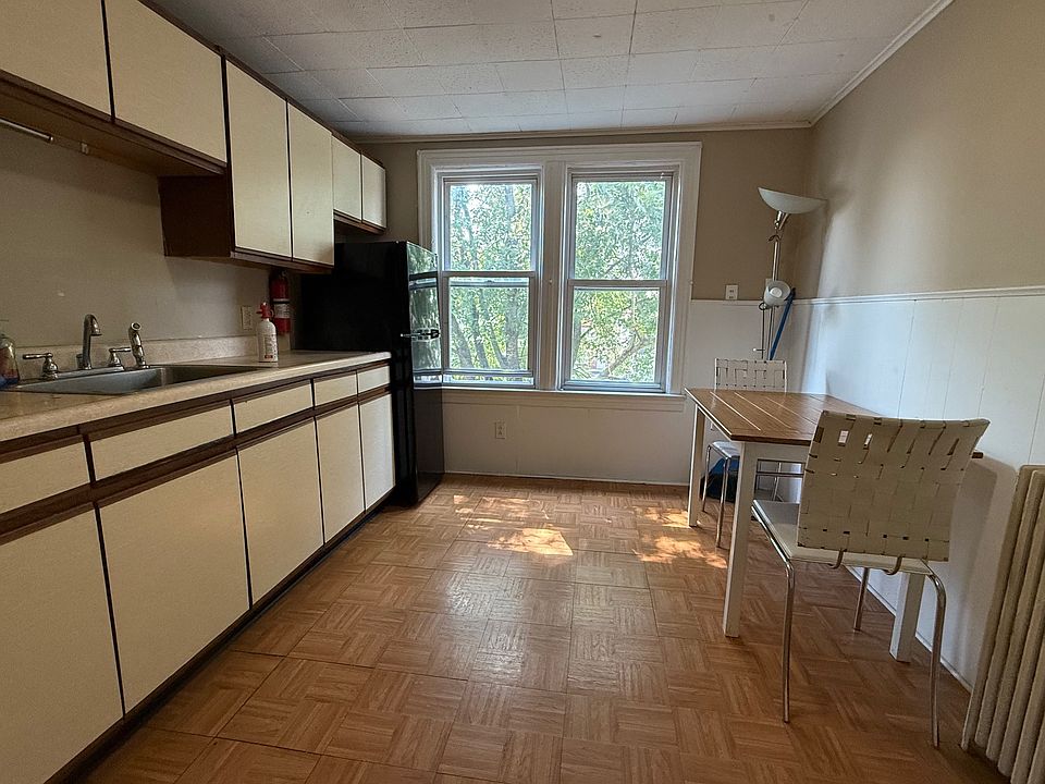 New floors being installed this weekend...new pictures to follow. HUGE 1 bedroom in highly desirable neighborhood! INCLUDES HEAT AND HOT WATER! Full huge eat in kitchen overlooking back yard, dining, living room and bathroom. SO MUCH SPACE!. Big Walk in closet and pantry closet. So much sunlight throughout! Backyard share, and washer/dryer one floor down. A block to the park with bike paths, tennis courts, waterside walking trails, easy walk to the lightrail or bus to JC or NYC and steps to every convenience, restaurants, grocery, ice cream! Call to set up time to tour! Background check conducted on applicants and prior landlord referral. NO BROKER FEE.