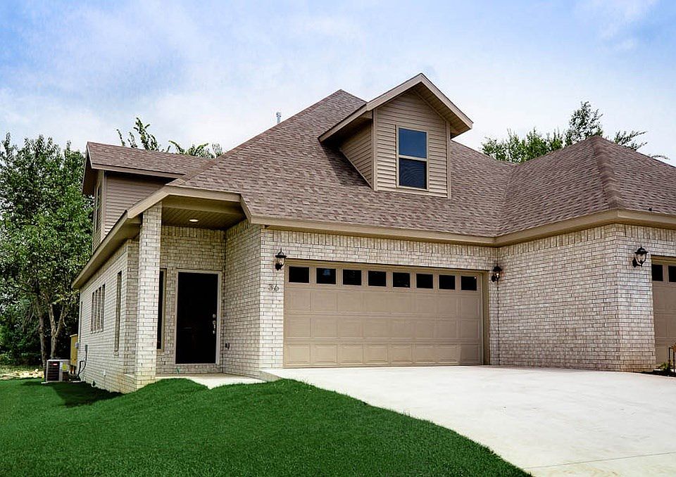 Many luxury finishes in this exquisite townhome! 10 ft ceilings, crown molding, stainless steel appliances, 3 bedrooms, 2 baths, 2 car garage. Open living/dining area. Master suite down with walk-in shower and closet. Privacy fenced yard with sprinkler system and back and side patios. Located in an upscale neighborhood convenient to WRMC and I-49.