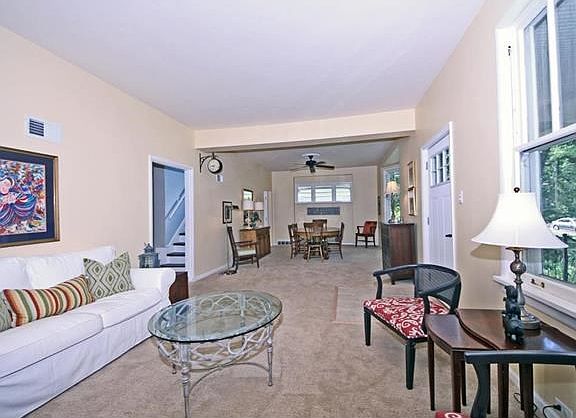 Ideal location where the whole family can enjoy the July 4th fireworks display. Walk to the rec center too. This homes charming curb appeal includes lush landscaping and colorful plantings. Inside a wonderful open floor plan is waiting for you to make it your own. The living room opens to the separate dining room highlighted by a bay window. The renovated kitchen is highlighted by gorgeous maple cabinets, Silestone countertops, recessed lighting, and a large picture window. There is a spacious deck off the kitchen with built-in seating & access to the tuck under garage. Enjoy the family room and breakfast room addition which complete this home perfectly. Its loaded with windows and a handy storage closet. Everyone will love the main floor master. Exposed wood steps lead to the upper level. Here you will find 2 bedrooms w/desk/reading niche & a full bath. The large fenced yard offers many possibilities for a pool, patio, additional garage space or an addition.