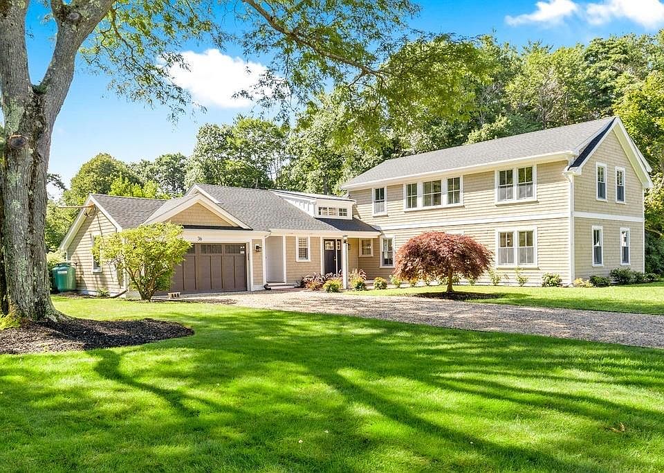 Dramatic architecture and stunning appointments define this 4 bedroom, 3.5 bath Custom Coastal Farmhouse. This beautiful, completely renovated & expanded home is located a few blocks from the #8 middle/high school in Massachusetts & Memorial Elementary school. The home features a spacious open concept chef's kitchen which is highlighted by a 8' center island, custom cabinets, quartz countertops & high-end appliances. Off the kitchen is a delightful sunroom overlooking a lovely patio. The grand sun-filled living room has soaring ceilings, gas fireplace & french doors which lead to an additional patio.The flexible floor plan offers space for a family room or formal dining room with custom cabinetry and gas fireplace.There are 2 Impressive master suites on the 1st and 2nd floor. This completely renovated home offers casual elegance with custom millwork and white oak flooring throughout.