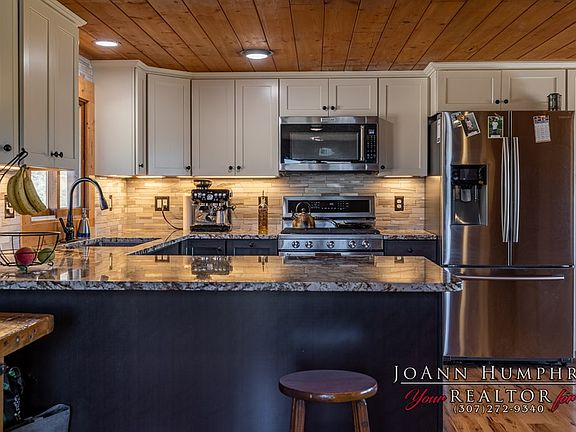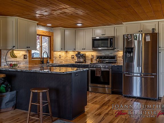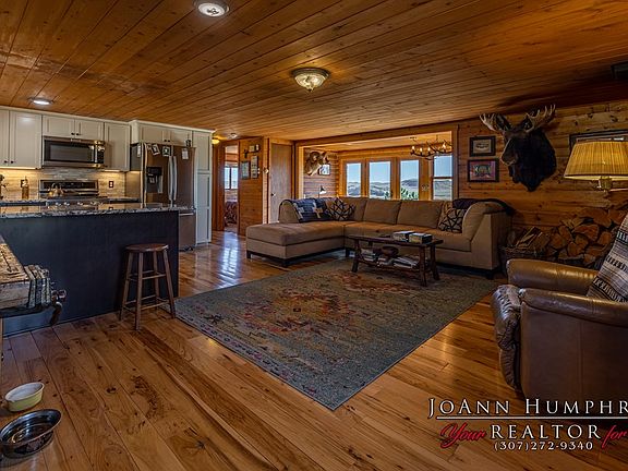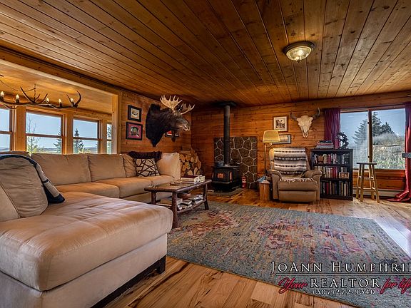HOME ON 9.49 ACRES MINUTES TO DOWNTOWN CODY, WY! The home is located on Wall St., & the acreage goes to the Southfork Highway. WYDOT approved access off of the Southfork for a future home site. Build your home while you live in the cozy log cabin-style home. The property will make a nice home for the horses and livestock as well. NOT IN A SUBDIVISION. Great possible rental or VRBO potential as well. The Seller has made several recent improvements; a new kitchen - granite counters, and lighting. Hickory wood floors and ceiling. Tongue and groove walls. Lovely sunroom with views of the rolling hills and mountains. The main floor is primarily heated with the wood stove. (Baseboard heaters just need to be hooked up). The basement is heated with baseboard heat. Very efficient home to heat. The home is privately set in the trees. The basement is a walkout with a private entrance. Possible inlaw setup! Many options for the future Buyer.