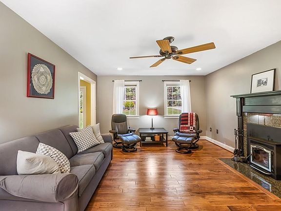 Stunning colonial set back on over two beautiful acres will welcome you home. Featuring hardwood floors throughout, newly updated kitchen with beautiful quartz counters, newer stainless steel appliances and farmers sink. Dining room has lots of natural light and opens to the living room with built-ins.The living room is being used as an office by current owners.Cozy family room with pellet stove.Newly updated half bath with washer/dryer. Upstairs you have three bedrooms and an upgraded full bath.The master bedroom with cathedral ceiling is so spacious and offers a huge walk in closet. Master bathroom has a soaking tub and tiled shower. Over sized two car garage;new central air units and savings that come with solar panels! Pride of ownership shows through this well maintained home. Wait till you see the landscaping and amazing backyard - deck, new patio, garden area and storage shed. 36 Walnut St. offers so much! Get ready to make your move!