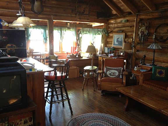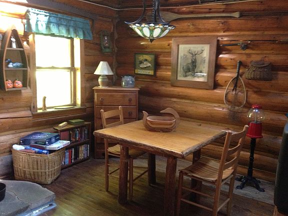 Beautiful waterfront log cabin on Shin Pond in Mt. Chase Maine. Three bedrooms plus a sleep sofa can accommodate 8. Cabin is heated with hot air oil furnace and a wood stove in the great room. Wood stove sits on a raised hearth with bluestone mantel. Cabin has an insulated roof and 4 skylights over the great room and kitchen. The original 16x24 boathouse has been converted to a workshop and screened porch at waters edge. Domestic water is provided by a 200 ft. drilled well and by a hand dug artesian well. A new septic tank was installed in 2012.