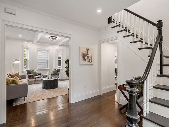 Welcome to this renovated 4 bed, 3 bath colonial with the perfect combination of timeless character and modern updates situated in a highly desirable neighborhood in Watertown. Enter through the front screened-in porch to the foyer w/ a built-in mudroom nook. The open floor plan on the 1st floor combines the living room, dining room, and kitchen spaces. The living room has bow windows, coffered ceilings, decorative molding, and hardwood floors. The dining room space opens to the kitchen peninsula and has access to the exterior deck. The new kitchen has great light, ample cabinet space, and large peninsula. Also, 4th bedroom/office on the 1st floor and a full bath. Primary bedroom has dual closets and a full bath w/ cathedral ceiling. Large main full bath w/ laundry also located on the 2nd floor. Bonus attic space for teen/craft room. New roof, HVAC, plumbing, and electrical. Mature landscaping for great backyard privacy. Minutes to Arsenal Yards, Charles River, Cambridge, and Boston!