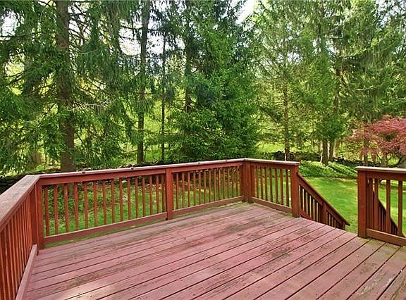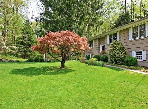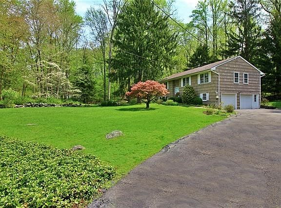 Set on a gorgeous 1 acre property of sprawling lawns, majestic shade trees and beautiful old stone walls, this well-kept and comfortable ranch home features a freshly painted interior, all hardwood floors, an eat-in-kitchen w/door out to generously sized deck, a bright open-layout dining room/living room, two full vintage bathrooms, a master bedroom with double closets, and two additional bedrooms on the first level. On the lower level you'll find a large family room with brand new berber carpeting, and a newly renovated powder room. Enjoy the privacy of your back yard and the woodland beyond. An over-sized two car garage and additional driveway space allow for ample parking. Conveniently located close to schools, shops and public transportation. Easy commute to GCT.