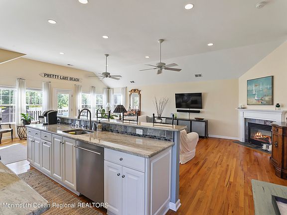 Stunning home with water views. The open concept design centers on a great room with vaulted ceilings, fireplace, hardwood flooring and kitchen featuring white shaker cabinetry, Custom granite counters and serving bar, stainless appliances. Separate areas yet one room is so perfect for entertaining and flows out onto the wonderful deck with amazing views of the river. Master Suite with walkin closet and private bath. First floor offers 2 Guest bedrooms, laundry room (don't miss the sink & small fridge), Full Bath. Crown molding, 2 car garage, sprinkler system, 5.5' crawl space provides so much storage. Quality craftsmanship, Extraordinary value, Ultimate livability. Bike to the beach, walk to restaurants, or enjoy the views from your deck - what a life !!