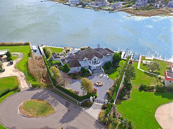 The best waterfront property available and it's just minutes from the center of the Village of Westhampton Beach and its Ocean Beach. 260' of new bulk heading. Large boat slip with lift, boardwalk, waterside heated gunite pool with spacious stone patio, hot tub, cabana with awning, kitchenette, bath and outdoor shower. The property is beautifully landscaped with wide open views of the bay in every direction. The magnificent sunlit 5000 s.f. home features a great room with fireplace and soaring two story windows with gorgeous views of the bay and sky. There are expansive water views from the formal dining room, eat-in kitchen, sun porch, paneled library and private junior master. A sweeping staircase takes you to the second level which features waterside balconies from each of the 3 bedrooms and floor to ceiling doors for spectacular views from each room. The master en suite has a separate office and a gym. In addition there's another first floor bedroom (5th) en suite, laundry/pantry, oversized 2 car garage, 5 zones AC and heat. Tip top condition. Come take a look and you'll never want to leave. Just Reduced!!