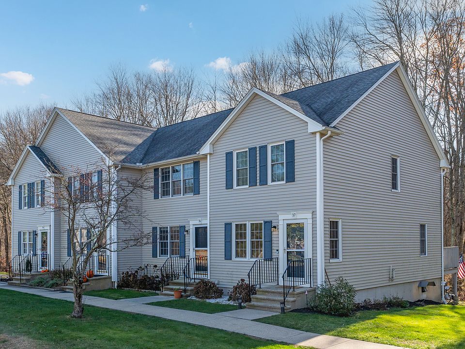 Thank you for your showings! Please submit offers (highest and best) by 8:00 on Sunday, 24 November 2024. Welcome to Pond Hollow, a private, well-kept complex surrounded by woods. This 2BR, 1.1BTH townhouse condo has been nicely updated and is move-in ready. New appliances, new floors, new baths, and neutral paint. On the first floor, you will find the living room, half bath, eat-in kitchen, and back deck. Upstairs, off of the landing with closet, there are two bedrooms with ample closet space and a shared full bath. The laundry is located in the lower, partially finished basement. The unit sits on the edge of the complex and backs to private woods. Enjoy peaceful, easy living at 36 White Tail Lane.