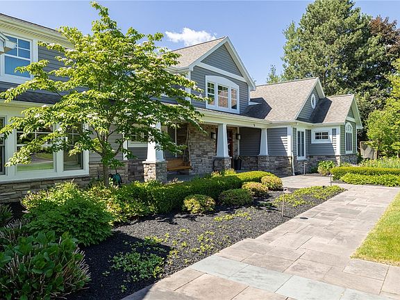 LIVE YOUR BEST LIFE ON WHITESTONE LANE! This Modern Craftsman-style Brighton home is the epitome of Luxury Living! No expense was spared w/the updates that have been instilled into this beauty! The 2-story foyer is flooded w/natural light & welcomes you in, prepare to be WOWED! The expansive front-to-back view of the Din/Liv Rm is impressive & highlighted by SOARING CEILINGS, SKYLIGHTS & WB F/P w/STONE SURROUND. The FABULOUS EAT-IN KITCHEN w/LEATHERED GRANITE COUNTERS is perfectly appointed for the most discerning home chefs & includes sleek HI-END APPLS! The Fam Rm w/GAS F/P is flanked by loads of built-ins! The SUPER LUXE 1ST-FLOOR PRIMARY SUITE w/GAS F/P, LAUNDRY & CUSTOM WALK-IN CLOSET boasts a MAGAZINE-WORTHTY ENSUITE SPA-LIKE BATH W/SAUNA & SOAKING TUB + offers access to the side patio w/BUILT-IN HOT TUB. Upstairs are 3 beds (incl. another primary), laundry rm & 3 full baths! The LL features a WINE ROOM, GYM & TV AREA + 1/2 bath & loads of storage. The PRIVATE BACKYARD will thrill you all summer long w/the RESORT-LIKE IG GUNITE POOL w/NEW POOL HEATER (22) & STONE PATIO. Located in a supreme location with unparalleled access to shops, schools, parks & URMC! Del Neg 6/6@9am.