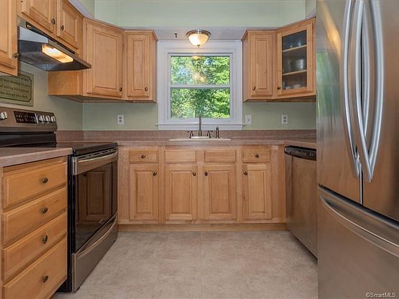 This classic gambrel cape sited at the end of a cul-d-sac has been lovingly updated to reflect the warmth and simplicity of the design style. Soft colors and hardwood floors throughout complement the newer kitchen cabinets and stainless-steel appliances. Three bedrooms upstairs include a master with reading nook. In this time of in-home offices and online classes, the walk-out finished basement provides additional space for whatever is needed. A capacious deck, stylishly painted with brown balusters and white railings, overlooks the private backyard and provides a comfortable perch for day or evening entertaining or relaxation. This truly move in ready home has many upgrades including new roof, all floors refinished and fresh paint in entire home to name a few. 2 hours to NYC and Boston.
