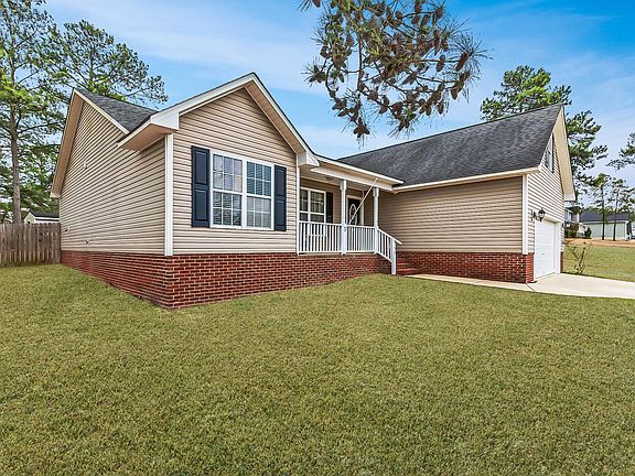 This lovely home is nestled in the charming Carolina Seasons community and features 3 bedrooms and 2 bathrooms in an open split ranch layout with a 2 car garage. You'll love the painted kitchen cabinets, stainless steel appliances, luxury vinyl floors, and upgraded light fixtures. The spacious primary bedroom features a trey ceiling, walk-in closet, and convenient access to the back porch and fenced yard. Take in the breeze on the rocking chair front porch, or head to the community pool and clubhouse. Convenient to Fort Liberty, Sanford, and Fayetteville! Preferred lender offering eligible buyers 1% first year buydown incentive.