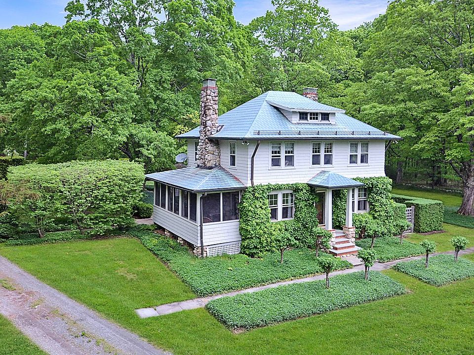 Love, care and inspiration has ensured that this 1920's river rock & timber two-story home is beautifully and impeccably maintained to this day. Nestled on 38 glorious acres at the end of a long, tree-lined driveway, it's wonderfully private & secluded. Bluestone terraces, custom shrub and perennial gardens, lush lawns, an in-ground heated pool & winding woodland trails provide a superb escape from the hustle and bustle of everyday life. Featuring rare, extinct American Chestnut wood trim & doors with original hardware, hardwood floors & two stone wood-burning fireplaces, history is bolstered by every modern amenity and upgrade from the kitchen with custom cabinetry, Silestone countertops & high-end stainless-steel appliances, to the stylishly renovated bathroom. Quality custom window treatments made with the finest fabrics add a luxurious touch while Nest thermostats, upgraded electricity and plumbing add practical perfection to the elegant ambiance of this lovely country escape.