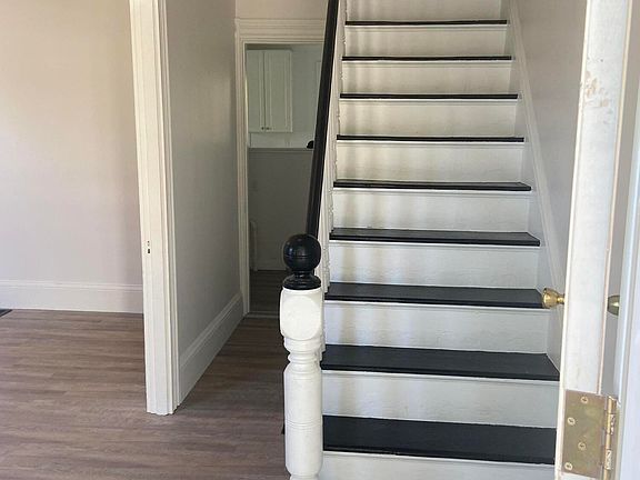 This newly updated 2-bedroom duplex is one block from Rockland's Main Street and the Ferry Terminal. High ceilings, (9'), a beautiful backyard and tasteful updates make this duplex a perfect starter home for a young family or for those looking to downsize. The unit offers approximately 1,000 square feet of living space and three 3 floors, as well as front and side entrances, an attached shed and ample dedicated off street parking. A spacious backyard is perfect for grilling and relaxing. The first floor boasts living, kitchen and dining areas with 9' ceilings while the second floor includes a full bath and two bedrooms with 8' ceilings. In addition, an unfinished 350 square foot attic creates excellent potential for expansion and equity-building. The property has undergone substantial renovations and infrastructure improvements. Interior renovations include all new flooring, light carpentry, paint and updated electrical and light fixtures.