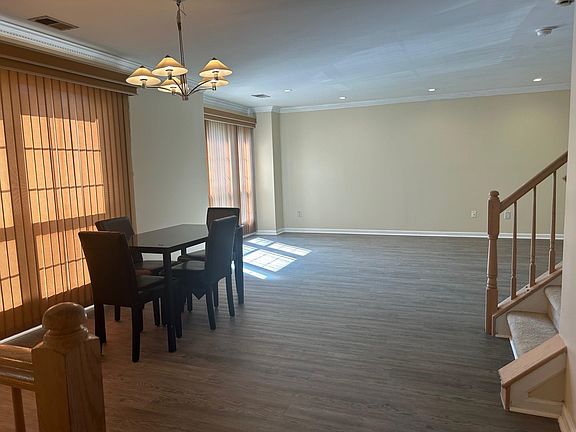 This spacious freshly painted 3-bedroom, 1.5-bath home is located within the exclusive, gated community of Society Hill II. The eat-in kitchen boasts stainless steel appliances, granite countertops, and sliding doors leading to a private balcony, perfect for added ventilation. The open-concept living and dining areas feature elegant crown molding, brand new hard wood floors, and recessed lighting, providing a warm and inviting atmosphere. Upstairs, the master bedroom includes an en-suite bath and a large walk-in closet, complemented by two additional bright bedrooms. With one assigned parking space and ample guest parking, convenience is key. The community also offers premium amenities, including a pool, tennis courts, and 24-hour security, ensuring a safe and enjoyable living experience