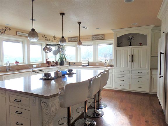 A spectacular private home above the meadows with BEAUTIFUL Lake Roosevelt views. Large modern one-level w/all the modern conveniences, 4 bdrms + office, 3.5 baths, sauna in the master, 9-panel solar backup, radiant zone heat, elec heat/AC, Quadra-fire in LR, a big screen theatre room, granite counters, hidden fridge, freezer & dishwasher, two convection ovens, speaker & security systems. There are fruit trees, raised gardens, an enclosed green house, multiple-fenced grounds, sprinklers, patios, 2+car att garage, shop, hookup for a generator and a black-top drive with a rod iron gate. Chicken coup. Please see 'Special Remarks' in the 'document' section to learn more details about the home and property. Listing agent must be present for all showings. No showings on Saturdays per selle