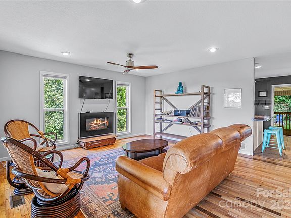 Nestled in a private mountain setting, this charming 3-bed, 3-bath home offers the ultimate escape from the hustle and bustle of city life while remaining conveniently close to all things Asheville. Spanning over 4 acres, including a separate parcel, this property is brimming with possibilities—whether as a primary residence, vacation getaway, or income-producing opportunity. The main level showcases a chic, modern flair with an airy open floor plan, cozy fireplace in the living room, stunningly updated kitchen, primary suite, 2nd bedroom, guest bath, laundry room & a large, covered deck perfect for relaxation & entertaining. The fully finished basement provides a generous space, including an additional bedroom, full bath, a family/rec room, and a versatile bonus room that could serve as an extra bedroom. This level opens to a large patio area, ideal for outdoor gatherings. Also included is a 2-car covered carport, greenhouse, workshop, shed, firepit, and more! See it before it's gone!