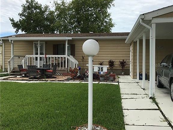 Come see this beautiful updated 2-bedroom, 2 bath home in Ridgewood Meadows, a land owned, pet friendly, 55+ community. Many upgrades including stainless appliances and an open floor plan. Walk-in closet in master bedroom, new vanities, sinks, toilets and laminate wood flooring. Nice front porch with Florida room and covered car port. Lots of activities in Ridgewood with newly added Pickle Ball courts a new outside work out area, community pool, clubhouse, tennis courts and great fishing. If you are looking for a great home in an amazing neighborhood, look no further. Conveniently located to I-75, Ellenton Premium Outlet Mall, Rocky Bluff Library, restaurants, shopping, medical facilities and the beautiful Gulf beaches.