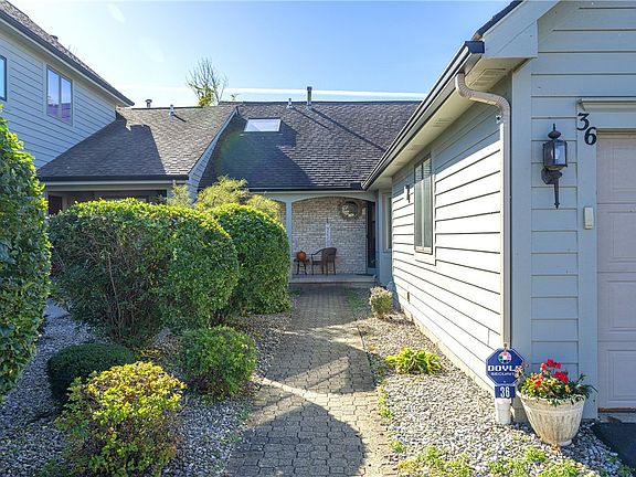 Looking for maintenance free ONE FLOOR living? Look No Further! Beautifully maintained END UNIT. Great room offers cathedral ceiling, and open floor plan. TONS of natural light from skylights with remote controlled blinds! Two sets of French doors flank the GAS FIREPLACE and lead to private deck with wooded backdrop. End unit location allows for extra bay window in dining area. Doesn’t feel like a townhouse at all! Step into FIRST FLOOR PRIMARY SUITE! Double Door entry includes TWO large closets and door to access back deck. Well-appointed Primary Bath with double sinks/updated granite counter, jacuzzi tub, linen closet, tile floor, and walk in shower. Skylight allows additional natural light! Kitchen has Corian Counters, pantry and stainless appliances (NEW IN 2023). First Floor Laundry and Mudroom just off 2 car attached garage. Upstairs you will find a spacious bedroom with large closet and a full bath. HUGE FULL basement with ample storage or future finished space! Glass block windows and extra dry! ALL NEW WINDOWS throughout! HOA $355/month includes Exterior Maintenance, Snow Removal and shoveling front walkway, mowing and lawn maintenance, common area maintenance, & trash removal. Early December closing preferred. Delayed Showings – Start Thursday 10/16 @ Noon. Delayed Negotiations – Please submit offers by October 21st at 10am. OPEN HOUSE SATURDAY 12-2pm!
