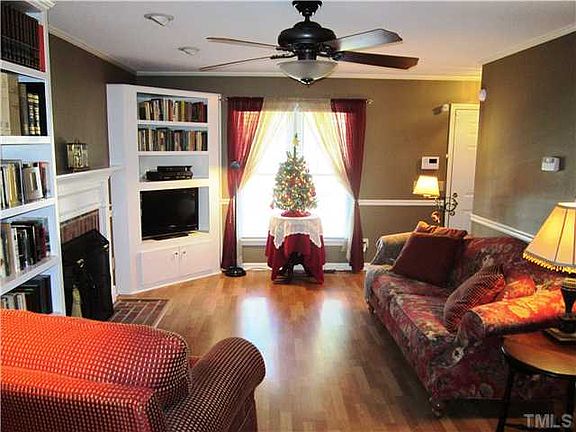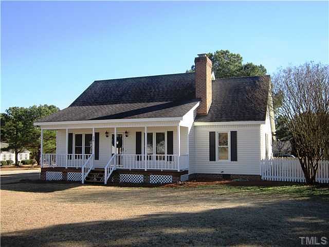 ADORABLE COUNTRY HOME WITH ROCKING CHAIR FRONT PORCH AND PICKET FENCE! Enclosed detached garage can be opened up or will make a great office or workshop. Desirable split bedroom plan on first floor & large bonus area on second floor with jetted tub & wet bar. Built in bookcases & masonry FP. Property is in beautiful selling condition. Located within five minutes of Campbell Univ.