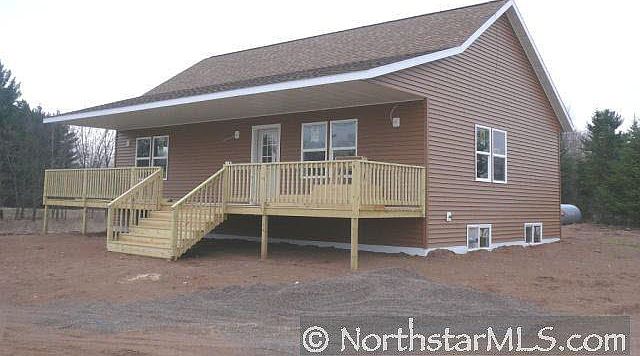 Brand New 4 bdrm home on 10 acres. 2 bdrms on main with open kitchen/liv area and vaulted ceiling and full ba. Lower level is a large fam rm with 2 add'l bdrms, full ba, laundry and storage. Large country porch overlooking field and trees! Finlayson.