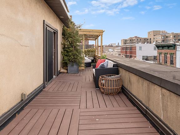Welcome to Penthouse city living, effortlessly take advantage of one of the most walkable cities in the United States, all while offering unrivaled access to New York City. Step out of the elevator to this captivating residence. experience the bliss of outdoor/indoor living with your private luxurious 600Sq wrap around terrace with a brand new masterfully crafted pergola just in time for summer. The bright sun filled living space offers a nice flowing layout, kitchen features ample cabinet space, granite counter tops, a full suite of stainless-steel appliances with an added wine fridge. This one-of-a-kind penthouse offers 2 bedrooms, ample closet space throughout, energy efficient thermostat , in building laundry, Pet Friendly and very LOW HOA! In the center of Hoboken within a few blocks of Hoboken Terminal (PATH, NY Waterway Ferry, Light Rail, NJ Transit), Church Square Park and Columbus Square Park, and an exciting array of boutique shopping, dining, coffee shops, farmers markets and parks/playgrounds that make the mile square city. Enjoy a well balanced home life with all the amenities of city living!