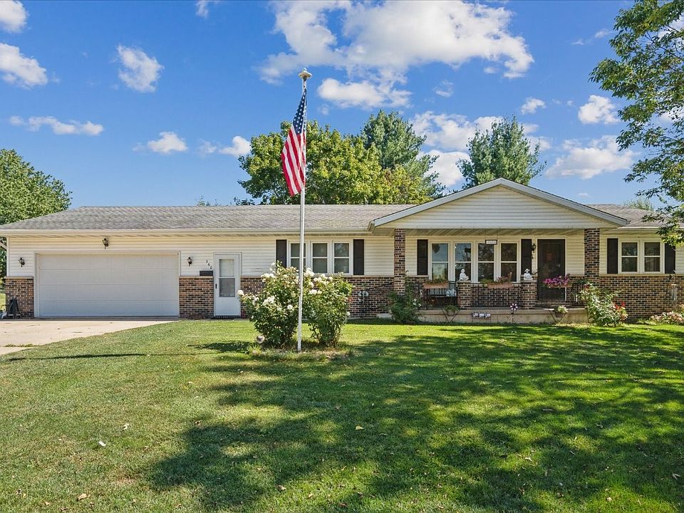 This fabulous property has undergone numerous upgrades in the past year, making it move-in ready and perfect for modern living. New windows, furnace, AC, and updated flooring in the living and dining areas create a fresh, comfortable atmosphere. The open kitchen boasts brand-new appliances, a convenient breakfast bar, and plenty of space for entertaining. The primary suite is generously sized at 15x14, featuring a walk-in closet for all your storage needs. You'll love the large living room, two additional bedrooms, and a full bath all on the main level. The main floor utility room is equipped with built-in cabinets and counter space for extra convenience. Enjoy the 15x11 three-seasons room with windows all around, perfect for relaxing. The lower level is unfinished but offers a shower, toilet, and sink, adding extra potential. A massive 25x30 garage provides ample room for vehicles and storage. Situated on a corner lot, this home offers the charm of small-town living at its finest!