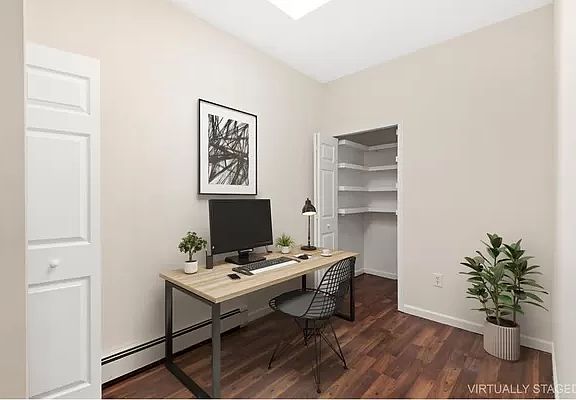 Complete privacy is yours with this tranquil Top floor residence located within an 8-unit, walk-up condominium building. No adjoining walls and no apartment above yours guarantee your quiet enjoyment! A private balcony provides coveted, outdoor space with views of the harbor and Manhattan skyline! This light-filled apartment features fine finishes including porcelain floors, modern tiled bath, granite countertops and stainless-steel appliances. There is a home office with skylight and two spacious closets including a walk-in closet! Video intercom system. On-site Super and Laundry room in basement. Low monthly maintenance of only $150/month, 421A tax abatement and today's low interest rates make for a very low monthly payment! Fantastic central Sunset Park location Short distance to Industry City, Costco, Bed Bath Beyond, World Market and plenty of restaurants and shops along 5th Avenue. Enjoy recreation and Manhattan skyline views from nearby Bush Terminal Piers Park and Sunset Park with its Olympic-sized swimming pool. Don't miss this fantastic opportunity!