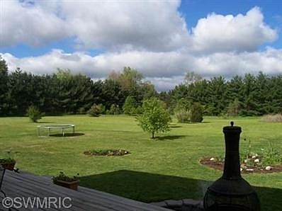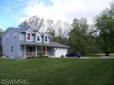 3.4 acres is the setting for this 2003 Plainwell two story setting back off the road behind a row of pines for privacy. This home features spacious living room, kitchen with eating area and slider to deck overlooking a private fenced backyard. Formal dining room with new sliding glass door (being replaced), half bath on main floor and main floor laundry. Three bedrooms upstairs, full bath and master bedroom with private full bath. The basement has a finished family room with egress wiindow. Additional room with egress could be fourth bedroom, office area, play room etc. Two car attached garage. Covered front porch. Pole barn is 30 x 32 with cement floor. Close to town and easy access to US-131 expressway.