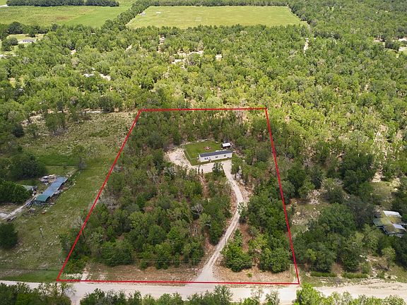 This 5 acre, 2019 turnkey three bedroom, two bathroom home is move in ready! Bring your belongings and enjoy this well maintained home which features upgrades throughout including 9' ceiling heights. The spacious kitchen includes all the things you need and many of the appliances are still under warranty. Beautiful flooring, large master suite with dual sinks and has walk in closets in each bedroom. Laundry room includes a full size washer and dryer. Enjoy the summer on the spacious back patio overlooking the back yard with a pool, hot tub, fire pit and relaxing hammock. ZERO Deed Restrictions so bring your horses & goats. Clean and mint condition! Nothing better than a quiet and private location in Gilchrist County - A+ Schools.