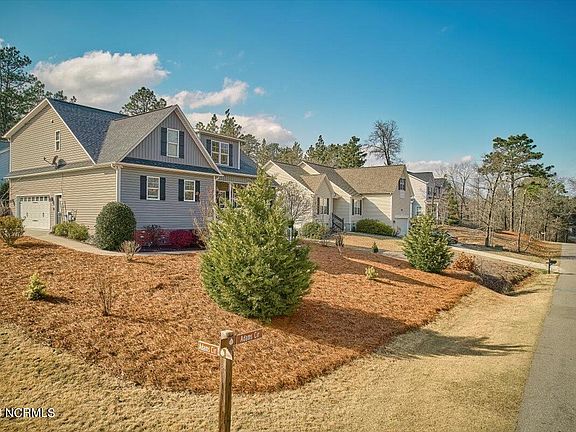 This custom home built by Sherill Britt offers 4 bedrooms and 3.5 baths. Located in the popular Village Acres neighborhood, convenient to the iconic Pinehurst Village. This home distinguishes itself from others by having a primary suite on both the first and second floor. Walking through the front door, you are greeted with custom features throughout the home such as wood floors, detailed crown molding and built ins throughout both levels of the home. The spacious kitchen with walk in pantry offers plenty of entertaining space, breakfast nook and separate dining room.