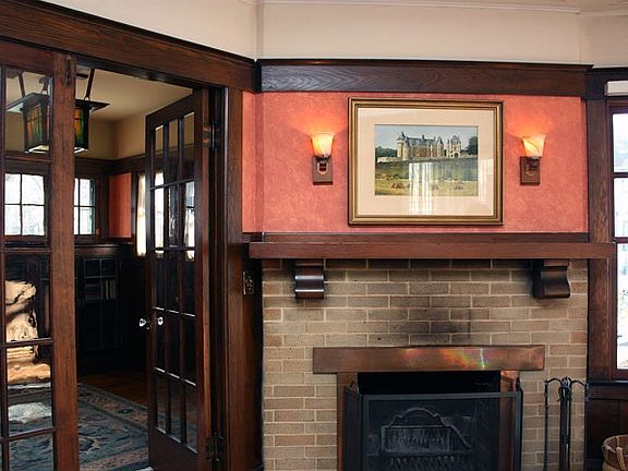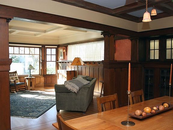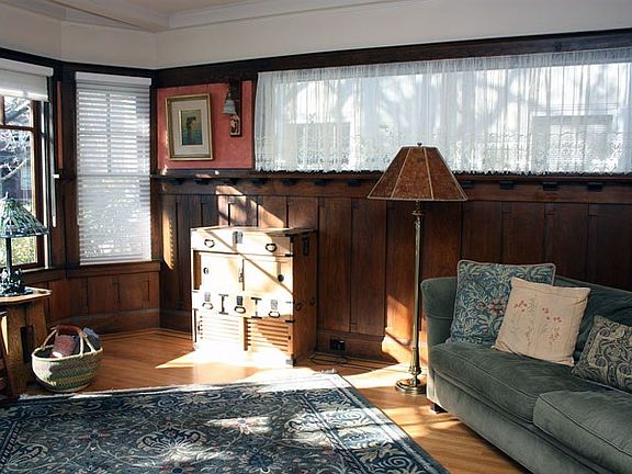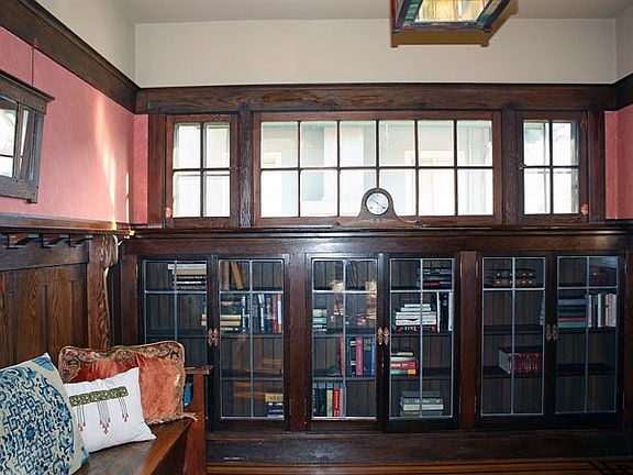 Magical Arts and Crafts Bungalow designed following a Henry L. Wilson plan. Lovingly restored by the current owner, this house has been upgraded and embellished with gorgeous Arts and Crafts style hand made lights, built-in leaded glass cabinets, and a Jarvis Architects designed bath and laundry.