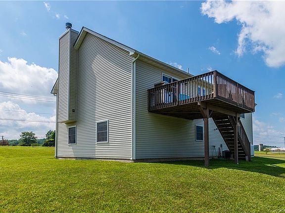 Like new, bilonial in Goshen School District. This 7 year old house features 3 bedrooms, 3 baths and an office. Kitchen has cherry wood cabinets and granite countertops with stainless steal appliances. Living room and dining room have cathedral ceilings and an open floor plan. Wood burning fireplace in the living room. Master suite with stand up shower and 2 closets. 2 other bedrooms one also with 2 closets. Hall bathroom with bath tub. Main level has a nice entry way and large family room. Also, an office/4th bedroom with a bathroom and separate laundry room and 2 car garage. Sit outside on the deck overlooking your 4+ acres of land. Recent upgrades include: new shingles on half the roof, Culligan water softener, drinking system (owned), alarm system, automatic garage door opener and new washer and dryer (2019).. Close to route 17 for easy commute.