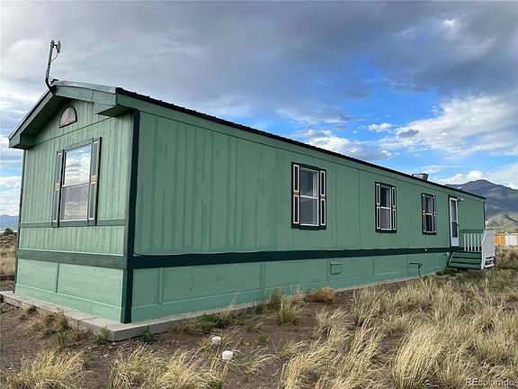 Great return on your investment. 8% cap rate if you rent at $1,000 a month! Move in ready! Clean, nice home with great floor plan: open kitchen/living area with primary bedroom on one end of the living space and the other two bedrooms and a full bathroom on the other. Primary bedroom also has its own bathroom. Ample storage throughout in kitchen, bedrooms and laundry area. Excellent views of the mountains, and oriented for maximal solar gain for optimal winter warmth. Owner has recently painted the interior and exterior, replaced carpet in front living room and hallway, installed a new refrigerator and stainless steel sink, fiberglass tub and trim with luxury vinyl flooring in one bathroom a new Moen sink faucet with ceiling exhaust fan in the other. Roof is steel, windows are double-paned. Quiet location and low maintenance. Nearby lots are undeveloped. This home offers an opportunity to buy affordably into the Crestone locale with all of its amenities: hiking, grocery stores, cafes and restaurants, shops, and the nearby spiritual communities. Crestone also has a strong demand for rental housing. This unit has long term rented successfully. Long term or short term rentals allowed. Schedule a showing today.