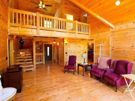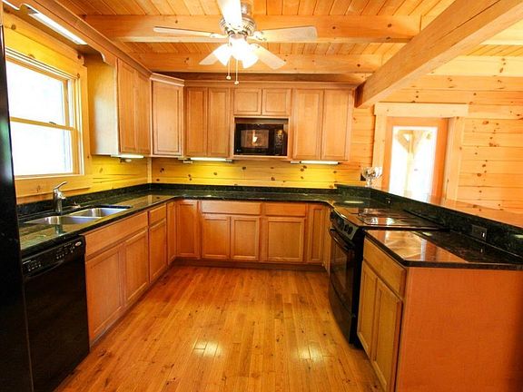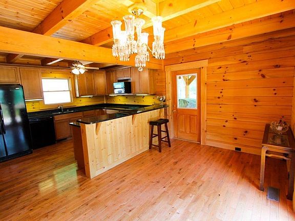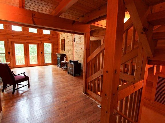 Great log home sitting on 34.65 +/- wooded mountain acres. This home has 3 bedrooms with 3.5 bathrooms with large master on main level. Home features hardwood floors, wrap around porch, granite in kitchen and bath rooms and metal roof. propane fireplace is good source of emergency heat. Home also features a 3 car detached garage. Home could be 5 bedrooms with basement rooms.