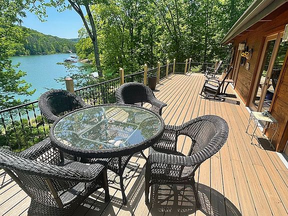 Are you ready for the summer? Bring your family and friends to a beautiful custom built ,hand hewn logs , log home on Norris Lake! 3 Bedrooms, 2.5 bathrooms, and plenty of space to relax. This custom built home is 2,000 square feet, and has a 600 sq ft covered lanai overlooking the lake, and wraped around porch . It sits on nearly four and a half acres with two lots, 1.97 and 2.4 acres each and it has over 300 ft of deep year around water frontage. Need a place to leave your boat? A covered dock with a lift system installed awaits in your own cove; perfectly situated for fishing and recreational use, where you can find fun for the whole family on the cleanest lake in East Tennessee. The property borders TVA land, ensuring plenty of privacy around your lake getaway. The house comes fully furnished, and includes custom designed hand forged railing and other amenities throughout the home. Come out and see it for yourself, the perfect lake getaway is ready for you to move in! includes cathedral ceilings, wide open windows, wood burning stove, carpet, wood floors, tile flooring, travertine tile ,ceiling fans, central heat and air , range/oven, refrigerator, dishwasher, disposal, microwave, center island, granite counter-tops, custom light fixtures, great room, 2 master bedrooms,beautiful lanai-600 sq ft with catedral ceilings , storage shed , boat dock with storage unit and boat lifting system instaled and much more! A must see! Call today for a personal tour of this lake house on Norris Lake!