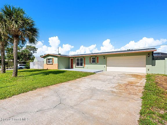 This coastal gem is move-in ready and loaded with upgrades! Major items are done: Roof (2019), A/C (2018), water heater & drain lines (2024), garage door (2016), and fence (2016). Fresh interior and exterior paint, new baseboards, and updated laminate flooring throughout. The renovated kitchen features granite countertops, modern cabinetry, and new appliances. Both bathrooms have been tastefully remodeled. Sitting on a corner lot in a quiet cul-de-sac, there's plenty of space for your boat, RV, or camper. The screened 35'x16' sports pool is perfect for summer days, and the barely-used hot tub stays! You'll also enjoy a storage shed, accordion hurricane shutters, and tons of storage inside and out. Located in a top-rated school zone with public beach access across A1A, and walking or biking distance to shops, restaurants, and the ocean. The sellers have moved on to their next adventure—now it's your turn to enjoy the beachside lifestyle!