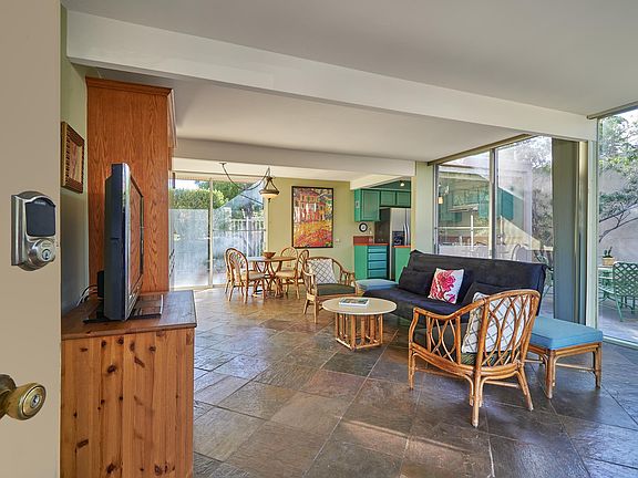 Racquet Club Cottages West (aka Garden Villas) One bedroom and two full bathrooms (Or 2 suites?) in a free-standing condo with no common walls. Racquet Club Garden Villas is an Historic William Cody, AIA designed complex of midcentury condos. Post-and-beam construction offers expansive walls of glass makes this unit light and bright. The space seamlessly transitions from indoor to outdoor! Sliders give access to 3 large serene private patios! This is a fabulous premier corner (Northwest) location. Mountain views from the bedroom of your own little oasis! There is inside laundry in huge utility closet. Easy access from parking space to your front door! Well-maintained gated community with lush pool and spa in truly park-like grounds. Check out this Historic complex which features its own Modernism Week tours. Check out the Mills Act tax credit, too!