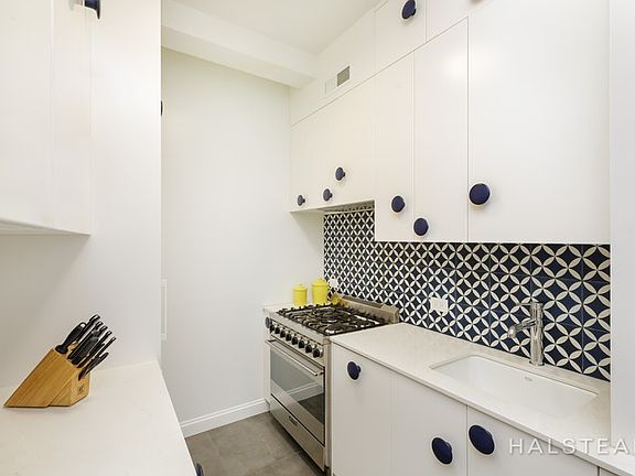 Amazing seasonal river views from every (brand new!) window in this one bedroom home! This whimsical and charming one bedroom has a renovated kitchen with Caesarstone countertops, Smeg stove, Bosch dishwasher, and panel-ready fridge, also by Bosch. Plenty of storage with cabinets up to the ceiling. Completing the look are the happy blue and white tile and ceramic flooring. The windowed bathroom has been cheerfully renovated with a penny tile floor, Toto toilet, and a full-length mirrored built-in medicine cabinet. The large sunken living area is so spacious with ceilings that are over 9 feet. In the spring and summer, you can take a nature bath without ever leaving your apartment. On the warm days when the river breezes are not enough, you will be able to enjoy air conditioning without blocking your view as the units are through the wall. In the winter months enjoy the river view and the Palisades. In addition, the hallway has enough space to be a dressing area, an office or even a nursery! This lovely home is located in a pet-friendly, beautiful art deco building with part-time doorman, live-in super, and interior landscaped courtyard. Located in the heart of Hudson Heights near two grocery stores, locally owned Cafe Bunnii, and restaurants. Close to Ft. Tryon Park, The Cloisters and 20 minutes to Columbus Circle on the A train. Come uptown and find everything you need at 360 Cabrini Blvd, 2K.