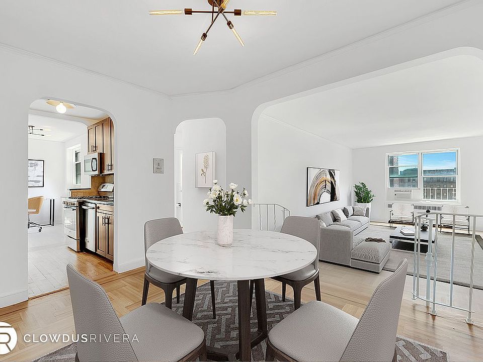 Welcome home to Residence 7A – a nicely-updated, Art Deco Junior-4 gem in the desirable 360 Cabrini Boulevard cooperative. Entering through the gracious dining foyer outfitted with two large closets, you’ll find a spacious and inviting one-bedroom, one-bathroom home with dining room—which may be converted to a nursery or home office. The handsome hardwood floors with original inlaid details were recently refinished throughout and the entire unit has been freshly painted, awaiting your designer touch. The bedroom sports a desirable dual exposure corner window making for a cozy reading nook. Speaking of windows, there are windows, windows everywhere: double width windows in the living room, bedroom, and home office – and even a windowed bathroom. Move right in and enjoy this loveliest of homes on the loveliest of Hudson Heights’ boulevards.