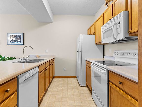 New carpet in 2021, high ceilings in this sunny and spacious east-facing second floor condo. Enjoy green space views conveniently located on Iowa City's free bus route. Near trails, dog park, easy Interstate access. Enclosed laundry room, two full bathrooms, open floor plan with large kitchen bar, dining area with sliding door to the screened porch. Electric fireplace, oversized two car detached garage.