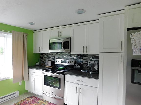 Lovely farmhouse has been totally redone. New windows, roof, wiring, insulation, kitchen, flooring and more! Spacious living area, lovely kitchen open to dining room. Great level back yard surrounded by woods. Lots of road frontage, no nearby neighbors. Country living on a paved road minutes from town.