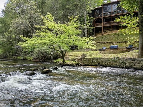 Welcome to Ellijay, Georgia; the place of “many waters,” and the cabin at 360 Cascade Point on the Ellijay River is no exception. As the community name implies, “River Bend” is the spot where the river starts to bend along its 15-mile journey before forming the Coosawattee River. Perched along one of the widest sections of the river with approximately 175 ft. of frontage with great, swift-moving, noisy whitewater. Living on the river provides many outdoor activities: fishing for trout or striped bass, canoeing, kayaking, tubing, or finding the perfect swimming hole. However, maybe the best activity is just sitting around the firepit enjoying the timeless soundtrack of the majestic river. Elegance and style are present throughout this 3 bedroom, 3 full bathroom cabin with the primary bedroom on the main level and a powder room, washer & dryer—large kitchen with abundant cabinet and counter space. Walk-in pantry with adjacent dining area. Great room design with beamed ceiling, stacked stone fireplace, French doors with transom windows all leading out to the back porch to take full advantage of the river. The second floor offers a Jack & Jill ensuite. The finished terrace level offers a family room, additional sleeping quarters, and access to the lower 568 sq. ft. deck and workshop area. The main level deck offers 1523 sq. ft. of unmatched outdoor and entertaining space. Featuring a covered, fully equipped bar and grill area with gas grill, separate side burner for frying or boiling, warming drawer, under counter refrigerator, hot & cold running water at workstation sink & free standing cedar ice chest for ice or frozen items, plus an adjoining closed porch that includes The Porch Life 365 Enclosure System. It is an inviting space filled with warmth and character and the versatility to enjoy your morning coffee or a nice glass of wine in the evening or host a large dinner party or a family gathering while enjoying the sights and sounds of the river.