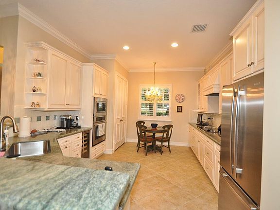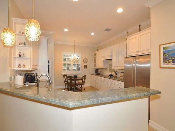 Immaculate Corner Unit on 1st Floor. Beautiful End Unit! Upgraded Kitchen w/Granite, Stainless Steel Jennair Appliances incl/French Door Refrigerator & upgraded Wine Cooler (U-line). Custom Closet Systems in both His & Her Master Closets. Master Bath has Custom Cabinets w/Soft Close Drawers & Doors, Granite, Undermount Sinks, Custom Mirrors, & Light Fixtures. Suited 2nd Guest Bedroom with personal bath & two closets. Large Den (Possible 3rd Bdr) has Custom Built-In Desk & Murphy Bed/Bookcase. Ceramic Tile on diagonal throughout w/Travertine transitions. Ceiling Fans in all Bedrooms, Upgraded Light Fixtures in Dining Room, Entry Hall & Kitchen Bar area. Crown Molding thru-out. Custom Plantation Shutters & French Doors. Newer Rudd A/C System. Minimum Frenchmans Reserve Social Membership req