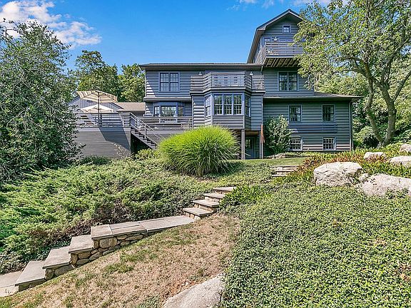 Stunning home located on Sachems Head, only a few hundred yards from one of the most beautiful harbors on the Connecticut coast. A short walk to the water reveals a private, beautiful neighborhood with breathtaking views of Long Island Sound. Perfectly oriented to the south, abundant natural light streams in through oversized windows, and a flowing open plan on the ground floor provides a feeling of spaciousness. A chefs kitchen offers a family table and opens into the formal dining and music room. Three bedrooms, including the former master, are separated from main living areas by a central hall, optimizing privacy and allowing for one-level living. Upstairs, the generous master bedroom with sitting area, two dressing areas, and master bath opens to a private deck with dramatic views of the woods. A stairway from the bedroom leads to an architecturally designed home office with 360-degree views, cathedral ceilings, and balcony. The large lower level contains a play area, exercise room, and sauna, which opens to the back yard. The design takes advantage of the unique site, offering a walkout basement and three decks climbing up the south side of the house. In a Tuscan-style setting of cypress trees, the inground pool with a gracious bluestone patio offers a mix of sun and shade. With its warm sense of community, and only moments to beaches and the historic Guilford Town Green, this home provides all the elements for shoreline living. Call today for your private showing.