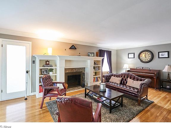 Wonderful charming center hall colonial with brick and stone front home . Call to see this 4 to 5 bedroom home. Tiled floor foyer welcomes you into this home that leads to hardwood floors and crown molding entrance.The living room has refinished hardwood floors , dental crown molding and a gas fireplace. There is a newer picture window to enjoy the front yard views and tree lined street. Off the living room is a seasonal porch with herringbone pattern brick floor and door that leads to stone patio with wood privacy fence.The formal dining room also has refinished hardwood floors, crown molding and wainscoting, plus built in glass cabinet.The kitchen is eye catching with navy blue cabinets and tiled floor. The old world charm is present with the vitrolite wall tile. The sink, faucet and some appliances have been updated.There is even a double pantry closet! Tucked in the back hall way is a first floor office with a double closet and hardwood floors. This could easily be a 5th bedroom. Across from the den is a half bath and a walkin cedar closet. On the second floor is a spacious master bedroom with a private bath, walk in closet and a double closet. There is also 3 additional bedrooms with great closet space. In the lower level is a wonderful rec room with a stone fireplace and a great wet bar- perfect for entertaining. There is also a 3rd full bath in the lower level too!!The back yard is fenced separately from the stone patio.